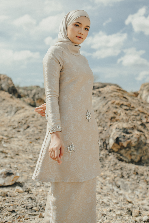 Myravallyn Online Fashion Malaysia Modest Clothing Baju Kurung Kurung Collections Timeless Series Dahleya Kurung Exclusive Dahleya Kurung Champagne