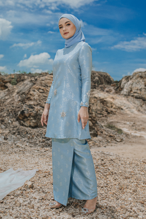 Myravallyn Online Fashion Malaysia Modest Clothing Baju Kurung Kurung Collections Timeless Series Dahleya Kurung Exclusive Dahleya Kurung Baby Blue